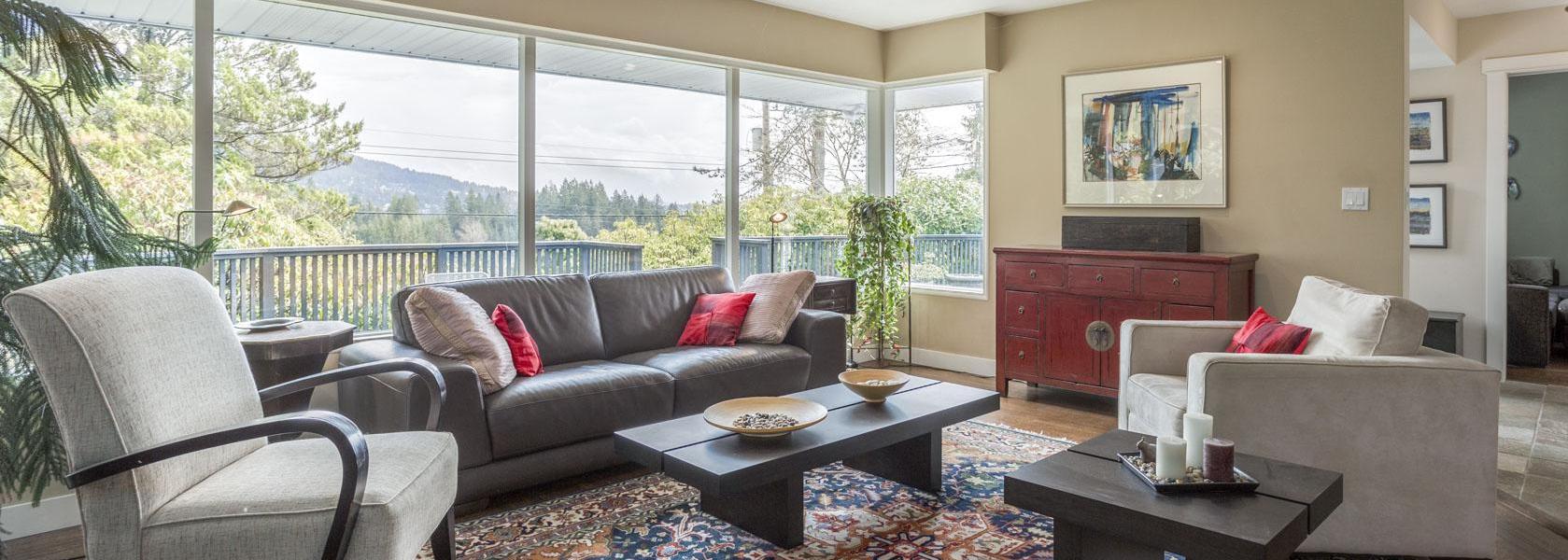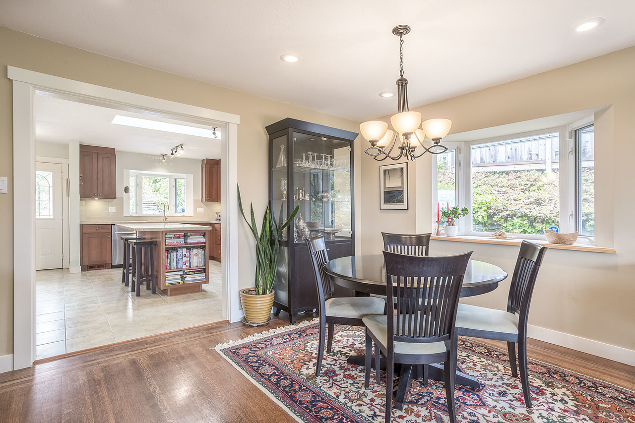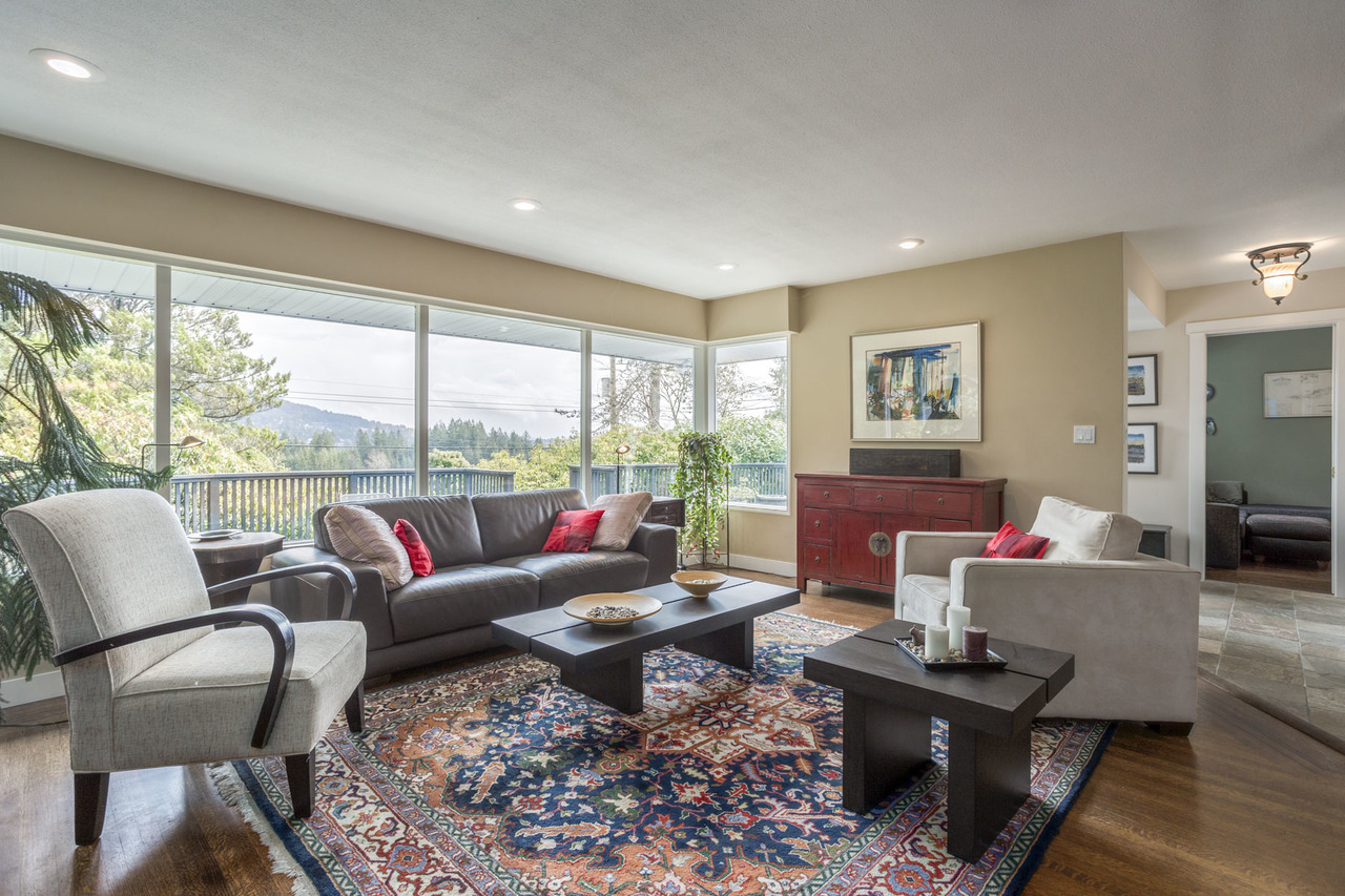 Let the red door welcome you home to this lovely Glenmore rancher on a flat, bright almost 14,000 sq ft lot with beautiful open mountain views and some views to the water. Spacious renovated kitchen (2012) highlights quartz countertops and a large island that opens up to the dining and living room. Warm refinished hardwood found throughout most of the house. Enjoy the tranquil sound of the creek (no creek on property) from the large, sunny west facing backyard. Grand patio space in front perfect for entertaining and taking in the views. Under 10 minute walk to Collingwood private school (grades 8-12), short drives to public French Immersion and IB schools. Move in ready for a downsizer, family or great opportunity for developers looking to take advantage of great views on a build.