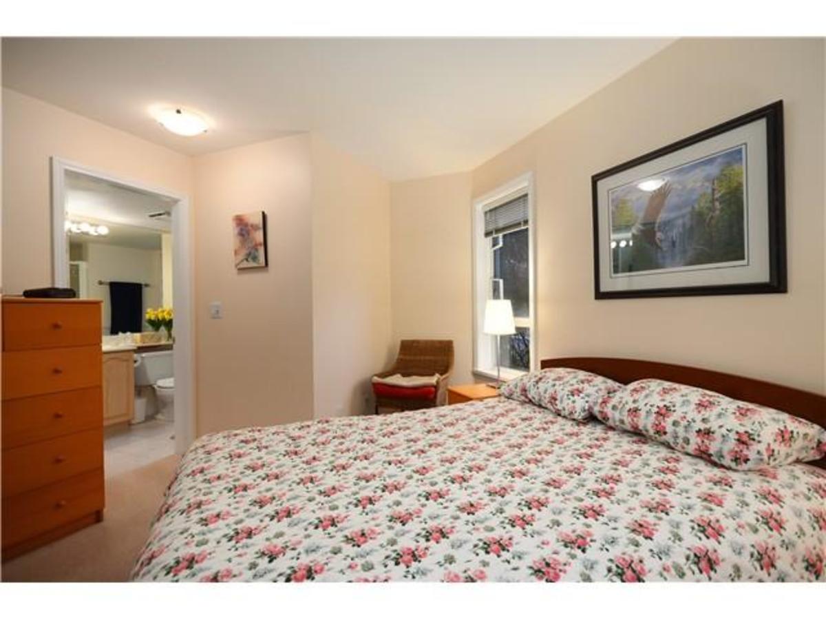 Nature lovers take note! This 2 bdrm corner suite is 1 of the lrgst flr plans at the 'Laurels' a garden community in one of LV's most desirable locations. Looks out to a small park corner of 29th & LV Rd. 1321 sqft of living space-extra  large kitch w/centre Isld & eating area & a large covered balcony. Bdrms in this flr plan are separated & both feature ensuite baths. Large in-suite laundry, in flr radiant heat, gas f/p, heritage style interior doors, lots of storage & tile entry. This home is in exceptional condtion, shares only 1 common wall with neighbor, and has an easy outdoor exit for pet owners.  Steps to LV Town Ctr! Thoughtfully planned, unique space!