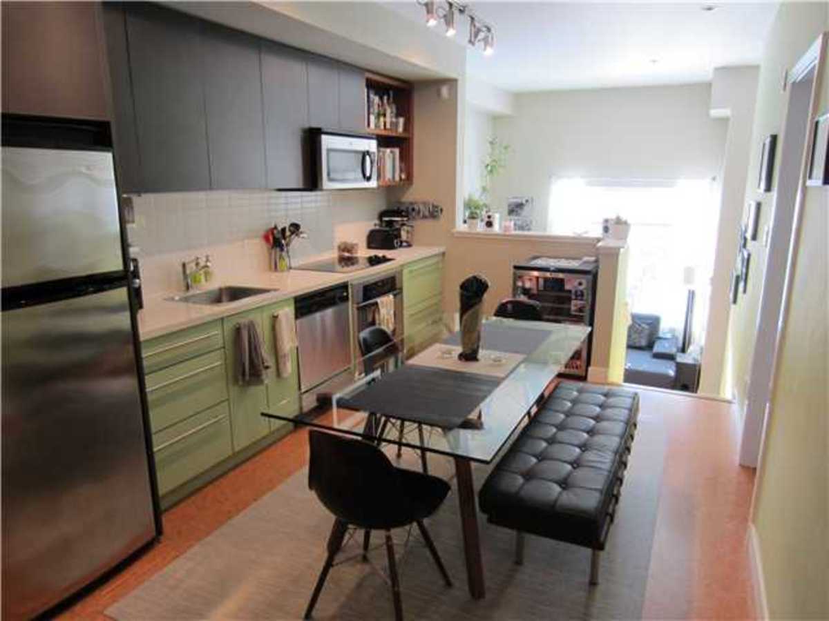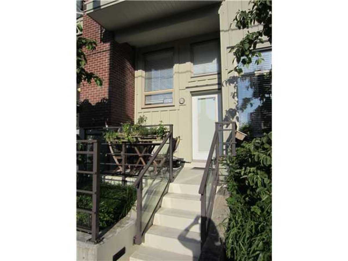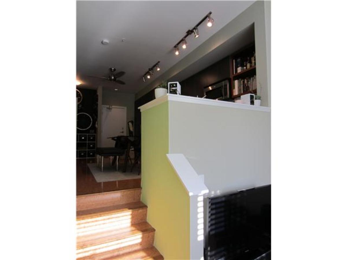 DOMAIN at 12th & Main. Rarely available one bedroom townhouse style plan on quiet east side of building. Unique floorplan featuring sunken living room with vaulted ceiling (12'4) & access to large outdoor patio. Sleek kitchen offering tons of storage, full size appliances & plenty of utility. Bedroom is private, bright & spacious with room for a king sized bed & a nook for computer desk. Well run building with bike room & available storage.