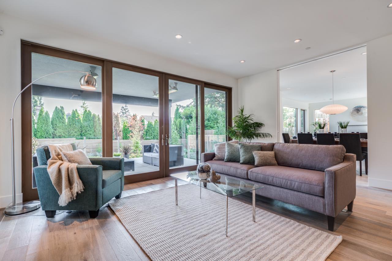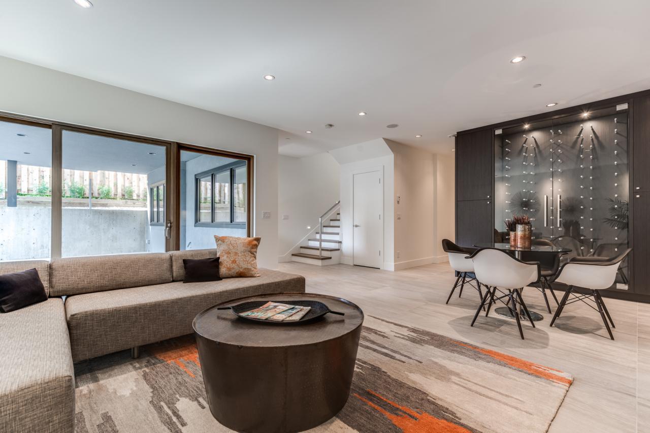 Exterior finishes are stucco and cedar with wood trim making a pleasing combination over the 2 by 6 construction. Enjoy the clean heating of the radiant in floor system throughout, and the benefits of an HRV (heat recovery ventilator) constantly circulating fresh air. Other finishes include Sub Zero, Wolf, and Asko appliances, 2 electric deck heaters, several gas fireplaces, and stunning hardwood.