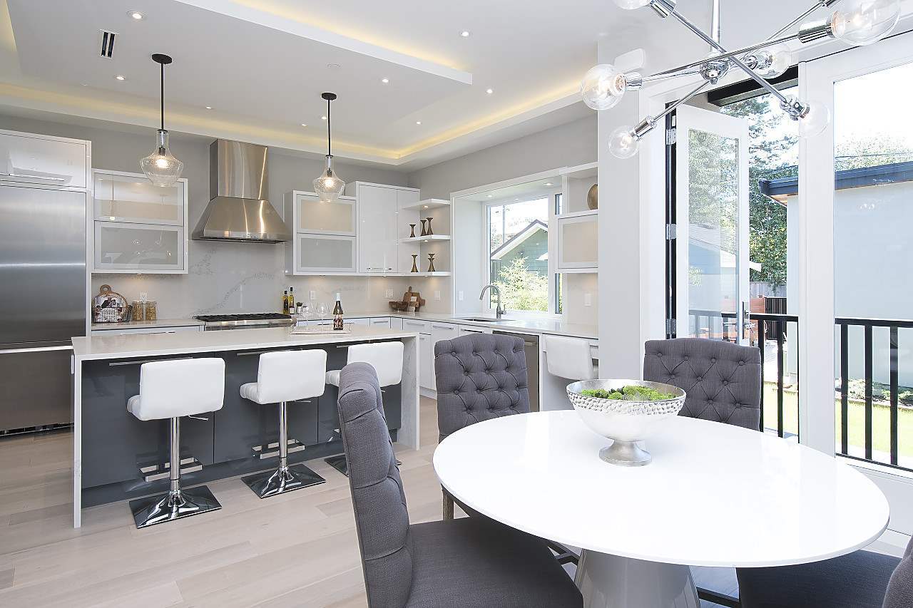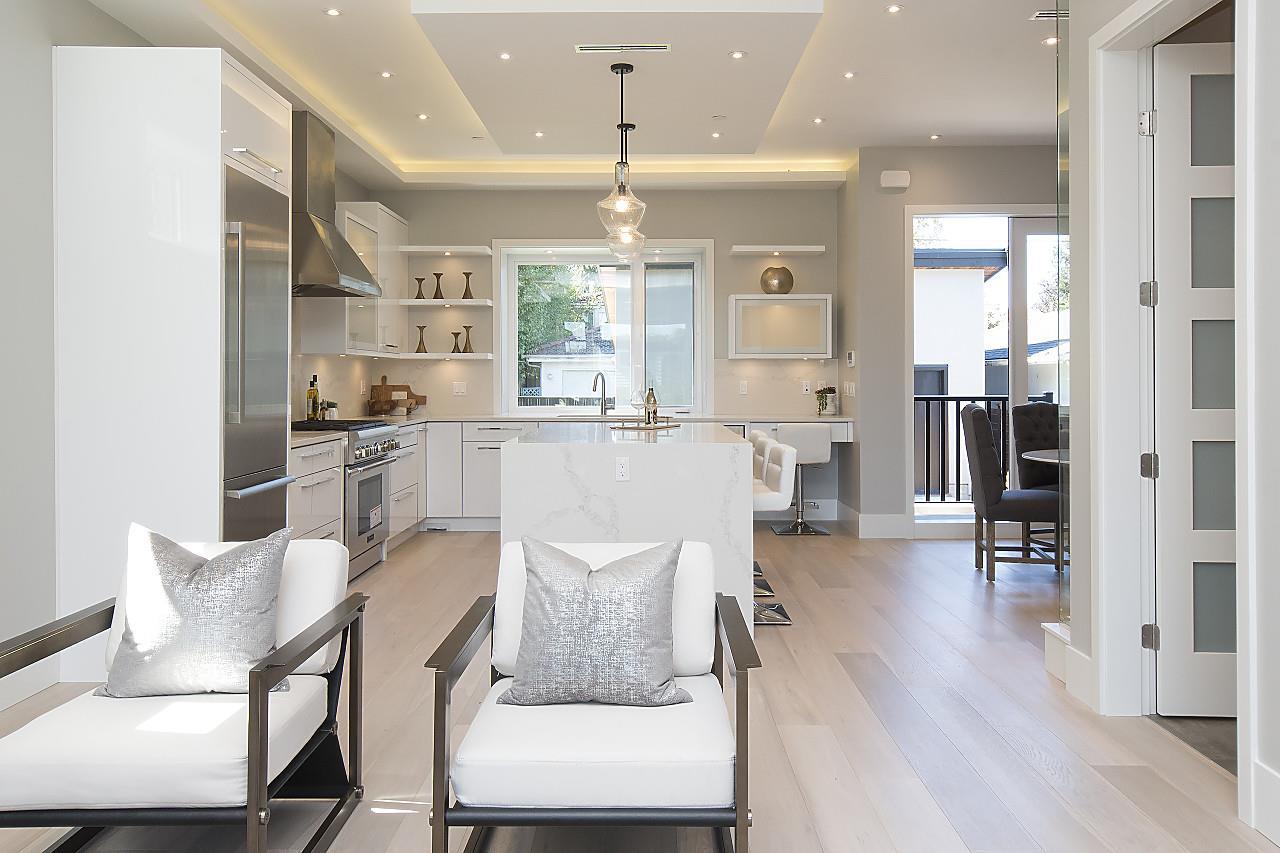 Brand new 3 bedroom home w/Rooftop Deck, spectacular mountain views! Gorgeous custom home exuding w/style + function. White-oak floors throughout including upstairs, 10' ceiling on main, gourmet kitchen w/commercial grade Thermador appliances, 36" gas stove. Open concept allows for entertaining from kitchen to dining area extending to patio/yard. Upstairs' 3 generous-size bedrooms, vaulted ceilings, walk-in-closet & balcony. Basement consists of one bedroom legal suite & family room for upstairs' use. Amazing Fraserhood location, McBride Elementary (5 mins walk) & Tupper Secondary. Check out this quality-built home today!