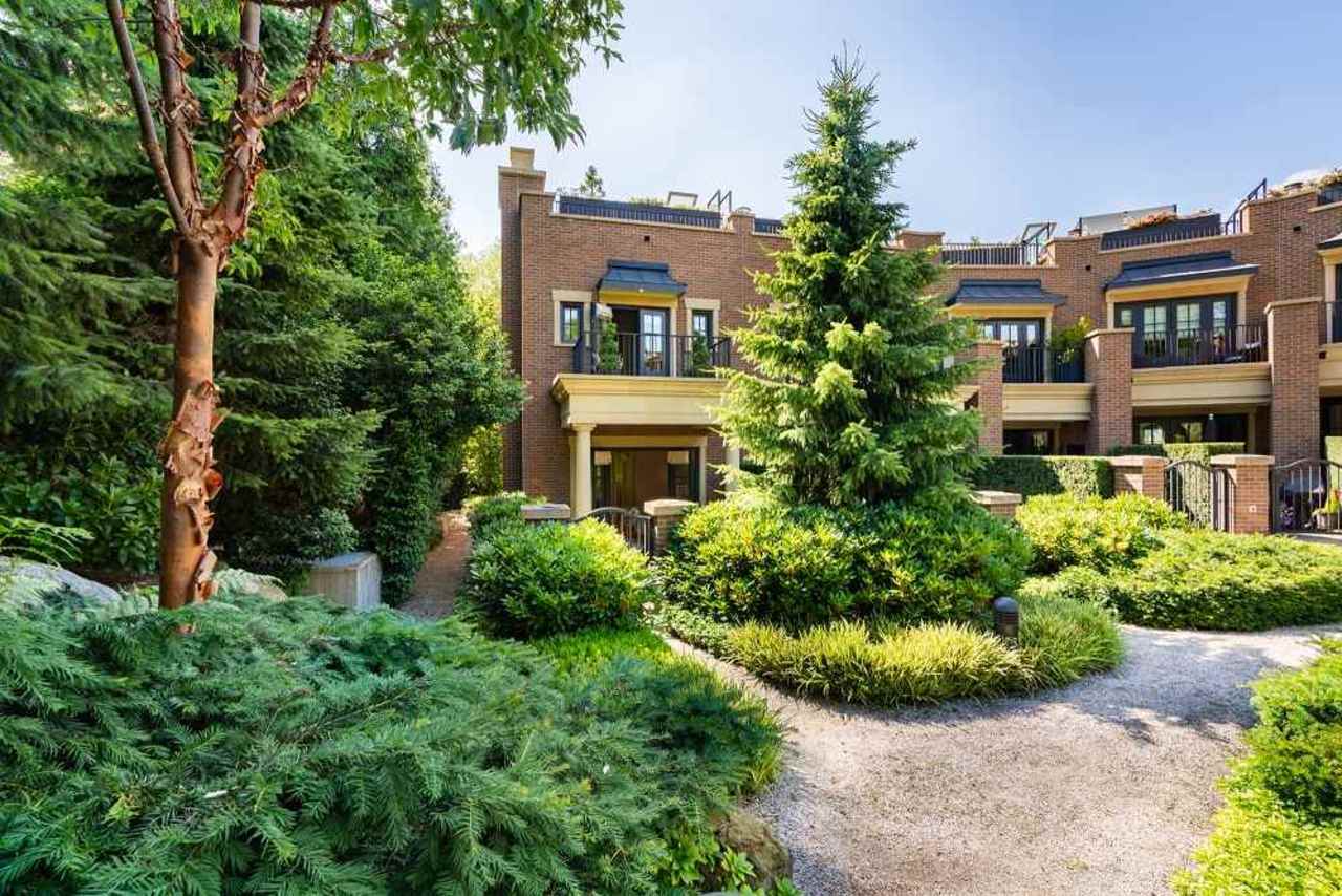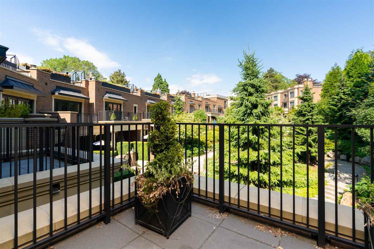 Welcome to “The Crescent on McRae,” a rare collection of exquisite Townhomes, set amidst award-winning grounds, where prestigious Shaughnessy meets South Granville. This luxurious beauty is a coveted end suite, where 10’ ceilings anchored by rich hardwood flooring are the backdrop to the high-end finishing - a hallmark of this gracious property: the gourmet kitchen features Wolfe appliances & a gathering-place central island that adjoins the great room styled living space. Spill out through stylish French doors to your expansive private terrace, or take in the ocean & mountain views from your sun-soaked rooftop patio with views of mountains, ocean & the city. Take a casual stroll & shop, wine & dine at your leisure. Enclosed 2 garage w/storage also. The perfect place to call home.
