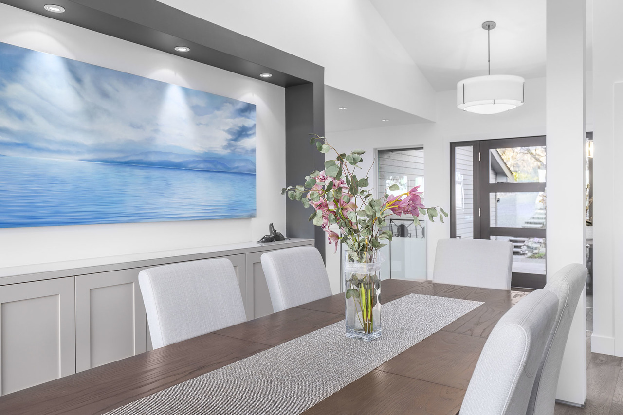 With the uninterrupted protected southern view over the greenbelt from Mount Baker, across UBC, and out to Vancouver Island, basking on this glorious deck is divine. This modern and comfortable executive style home features an open concept plan with huge windows and skylights to enjoy the view from every room of the house. Designed for easy entertaining, your guests will admire the Hubberton Forge hand-crafted lighting, stunning waterfall edge countertops, and quality wolf/sub zero appliances. Also ideal for a stylish family, with four bedrooms on one level and a short walk to top-ranked schools.