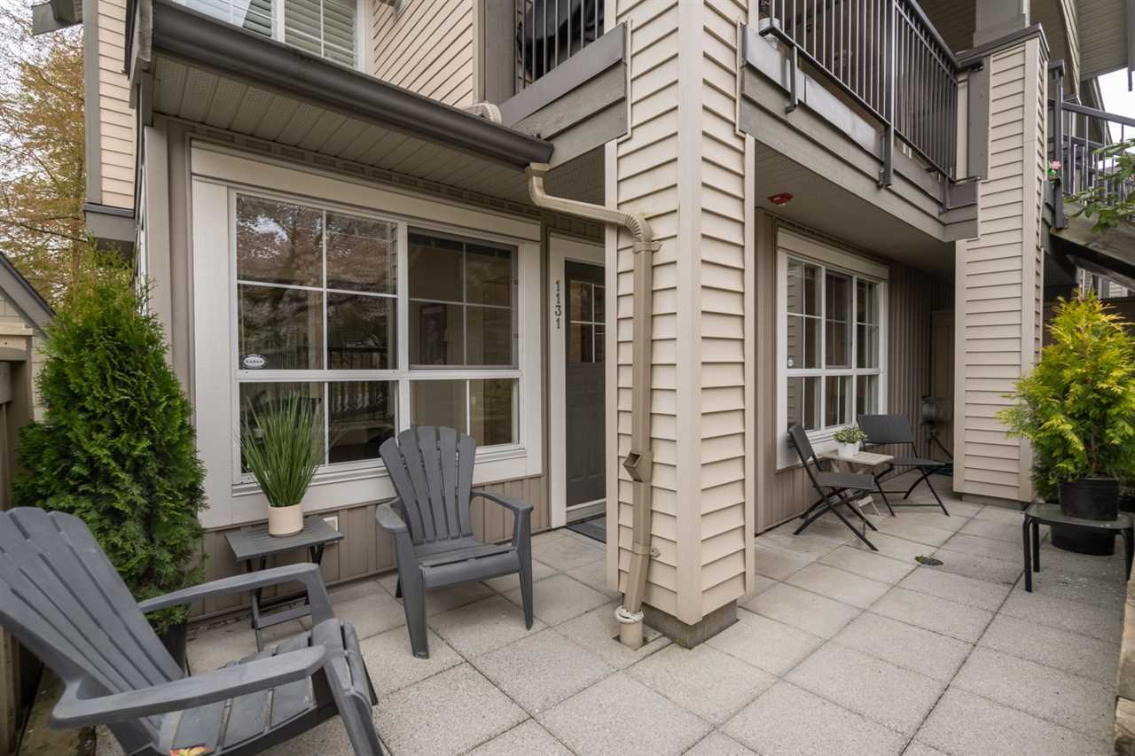 RARELY AVAILABLE & it is GORGEOUS! 691 Sq Ft townhome style 1 Bed & den ground level END UNIT with its own entry, 262 Sq Ft patio & on the most desirable QUIET side of HIGHGATE. Open floorplan with hardwood, newer stainless appliances, cozy gas f/p & granite countertops with eating bar. Good size bedroom with new carpet, extra large walk in closet, cheater ensuite & soaker tub. Bright & airy den that would make a lovely tranquil nursery or home office. All newly painted & shows to perfection. 1 parking stall, locker, gym, bike room, visitor parking, insuite laundry & complete peace of mind from a pro-active strata. Pets & rentals allowed with restrictions. Just steps to shopping, transit, restaurants & the very best hiking & biking trails. Absolutely nothing to do here but move in & enjoy!
