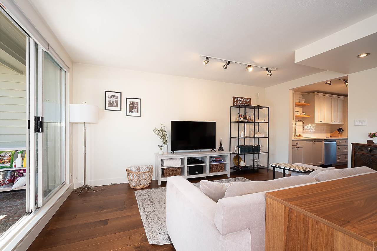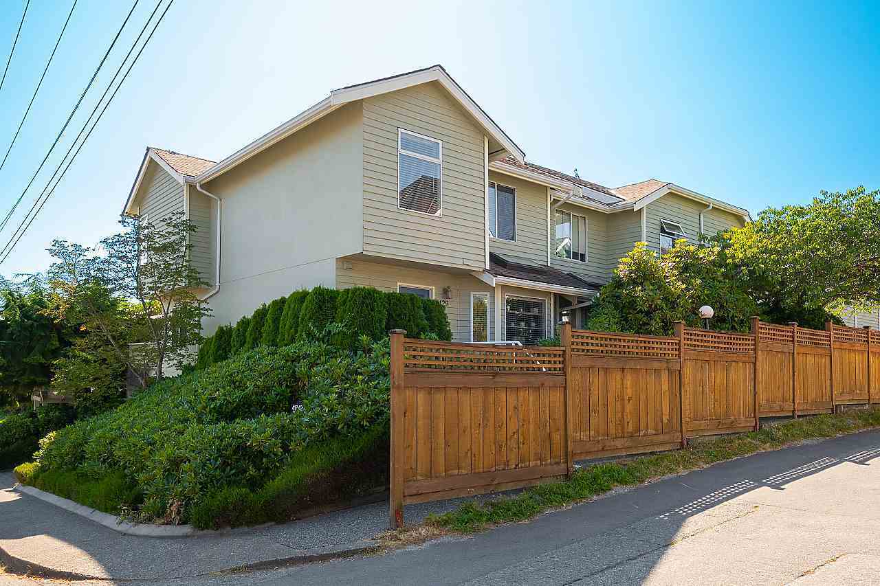 Tastefully updated 1397 sqft, 3 bedroom, 2 ½ bathroom end-unit townhome at St. Andrew’s Court in excellent Lower Lonsdale location, just a few blocks to shopping, restaurants & SeaBus. Surrounded by mature gardens, this quiet home is perched above w/ great views of downtown from the balcony of the huge master bedroom complete with renovated ensuite. All 3 bedrooms & the 2 full baths are on the top floor so you can be close to the kids. The main floor boasts a large, open living space, cozy gas fireplace & a spacious sunny-south facing, 256 sq-ft patio perfect for summer BBQs. The cook in you will love the big, updated kitchen w/ tons of counter space plus large breakfast nook. Comes w/ secure parking & large storage room. JUST MOVE IN! Showings by appt.