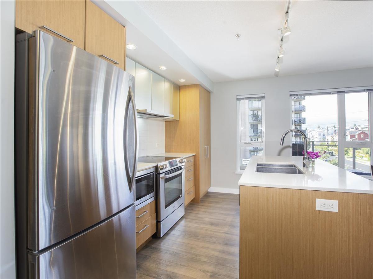 Quartz counters, deep soaker tubs, and wood veneer cabinetry give a warm feel. Includes a common gym and huge rooftop deck with BBQ!