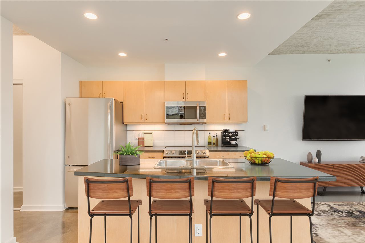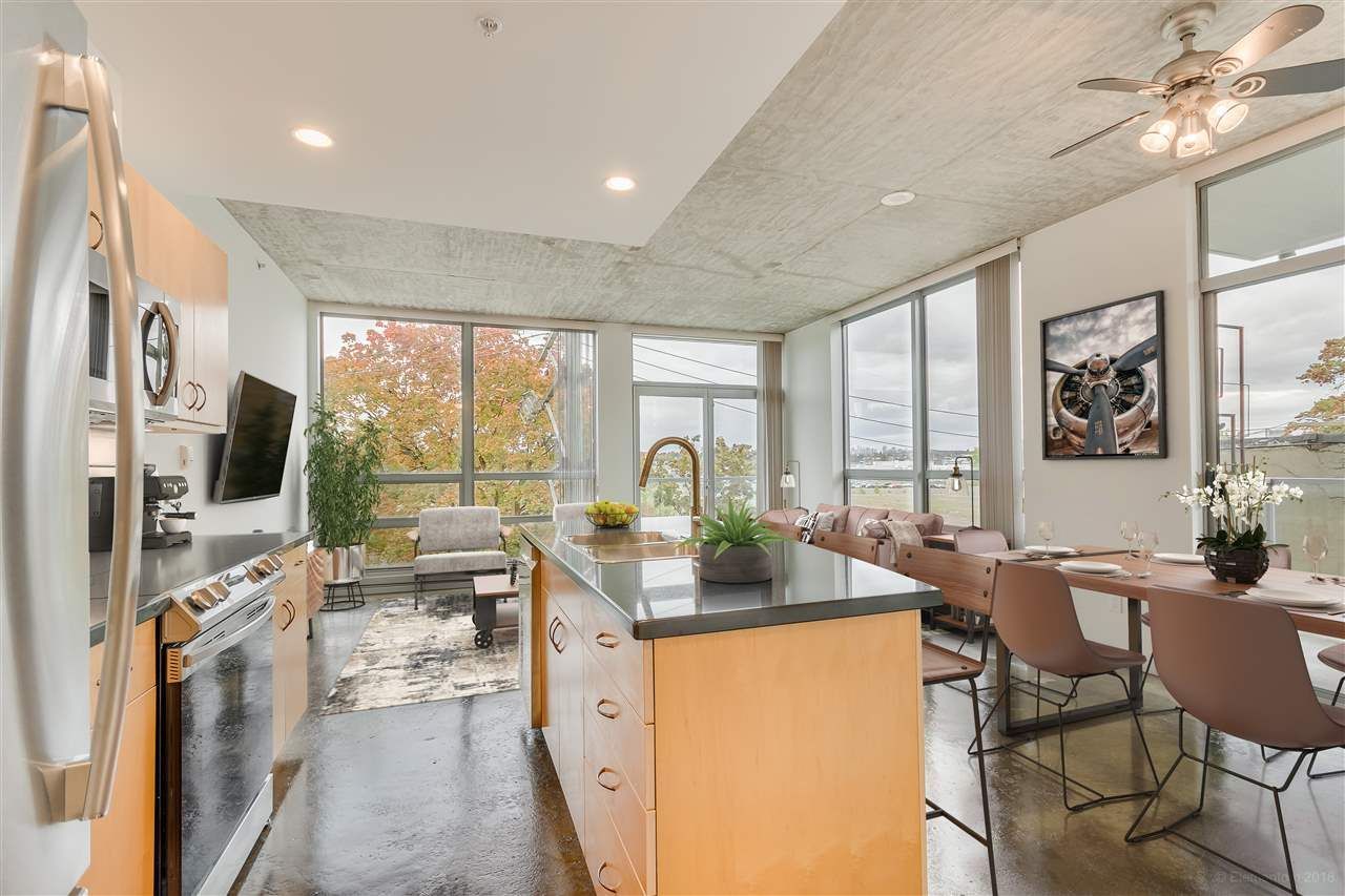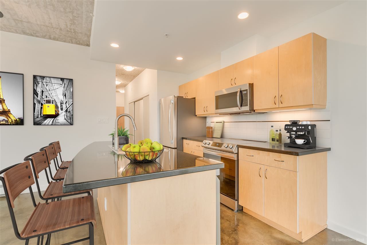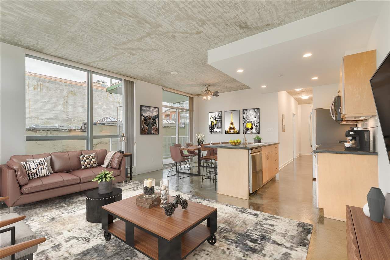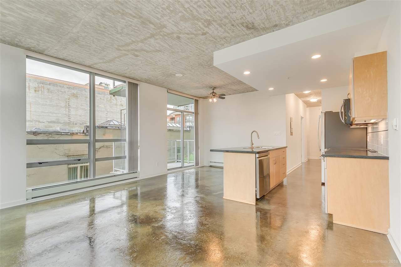 The Left Bank : Bright corner, well laid out 2 bedroom, open plan living in a unique loft-style apartment with 9' exposed concrete ceilings, acid etched concrete floors, new stainless steel appliances, freshly painted, granite countertops. Urban neighbourhoood, with easy access to Concord Pacific Park, Seawall, Skytrain, downtown, Main St & China Town shops, cafes and restaurants. Pet friendly and investor friendly building by the upcoming new St Paul's Hospital.