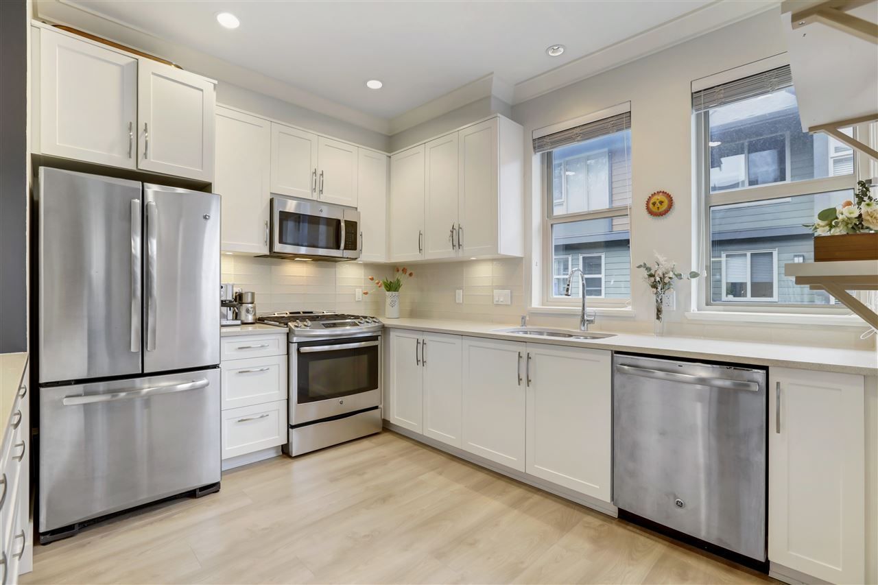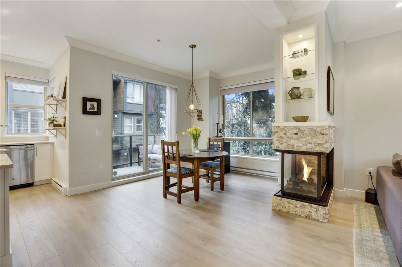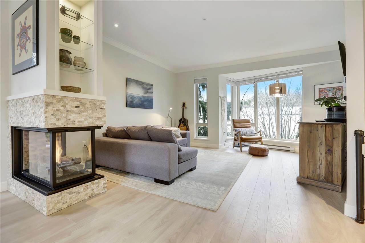 The open plan layout has great flow between the kitchen, living room, and dining area with 9 ft ceilings. Enjoy the gas range and cozy 3-sided gas fire. Quartz counters, radiant heating in the bathrooms, hot water on demand, HRV.