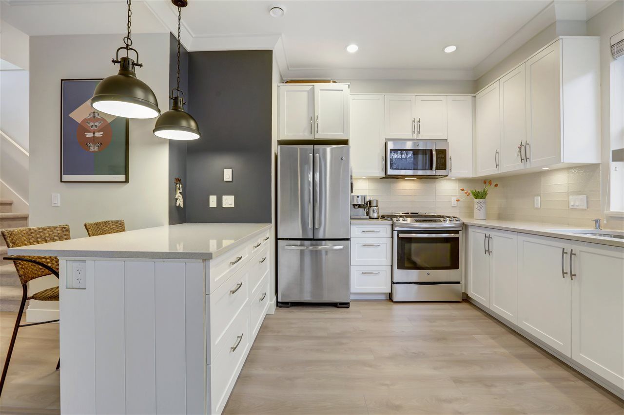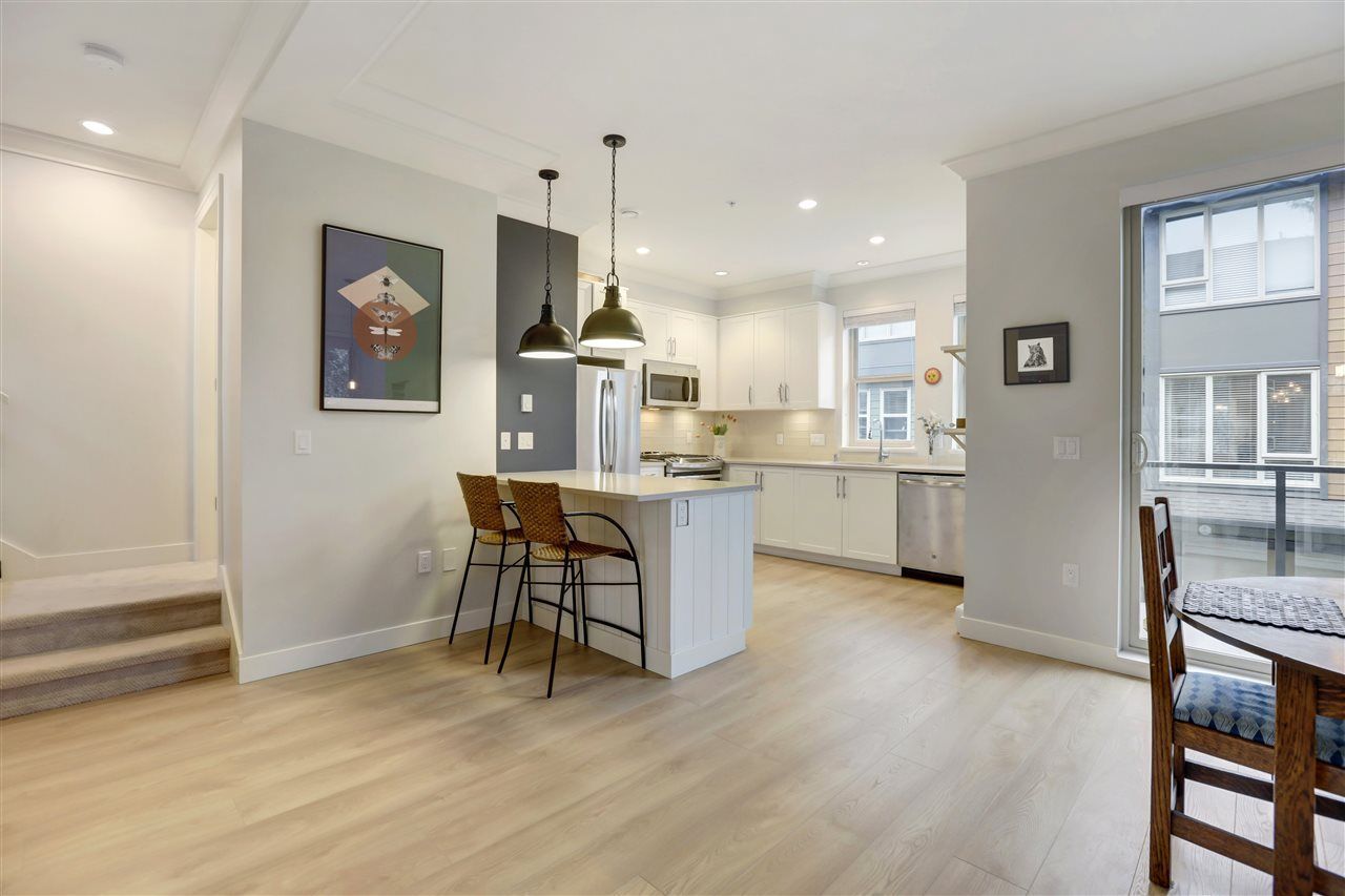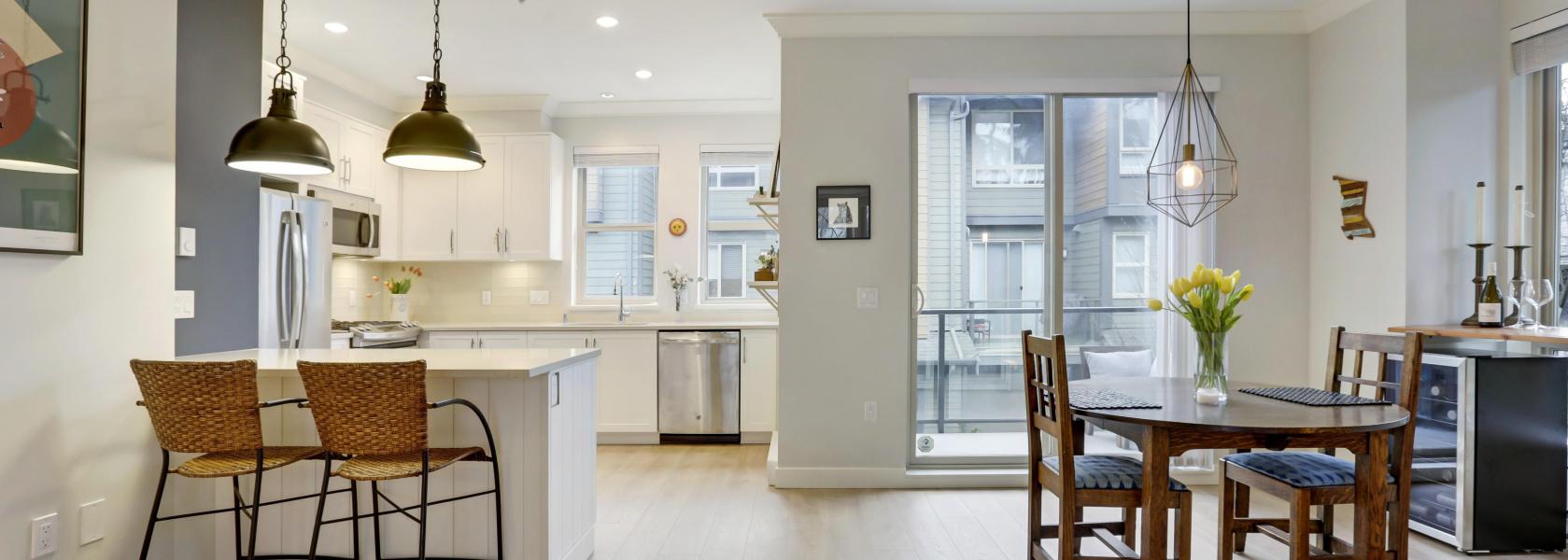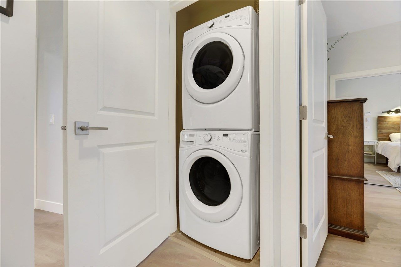 The open plan layout has great flow between the kitchen, living room, and dining area with 9 ft ceilings. Enjoy the gas range and cozy 3-sided gas fire. Quartz counters, radiant heating in the bathrooms, hot water on demand, HRV.