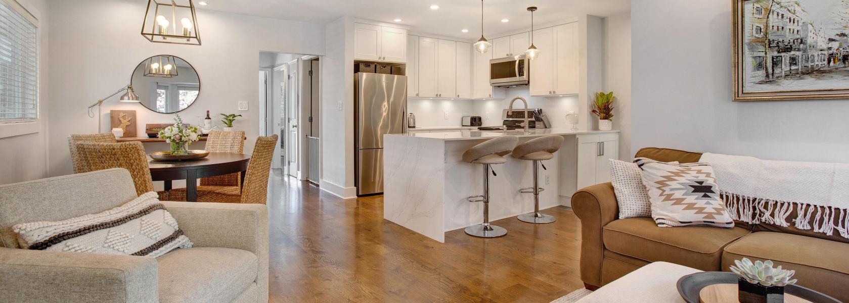Completely renovated to the studs in 2007 for the exterior, roof, mechanicals, plumbing, electrical, and drywall. The bathrooms were updated in 2015 and 2021, and the kitchen was brand new in 2018 including a recessed beam to remove a wall and get that open feel (with permits). This duplex shines like new with huge pride of ownership.