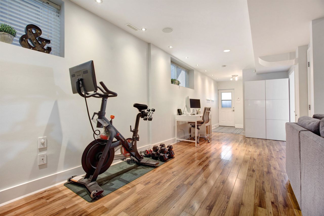 The south facing back yard is ultra-private with a large grass area, a patio, and deck space, and tons of room to play, entertain, and garden. There is a garage (new in 2007) and a parking pad - so easy options for all of your gear. 1670 sq ft over 2 levels feels large and open, and the lower level is dialled in for movie nights with a screen and bar, space for a workout zone/rec room, an office, plus the 3rd bedroom.