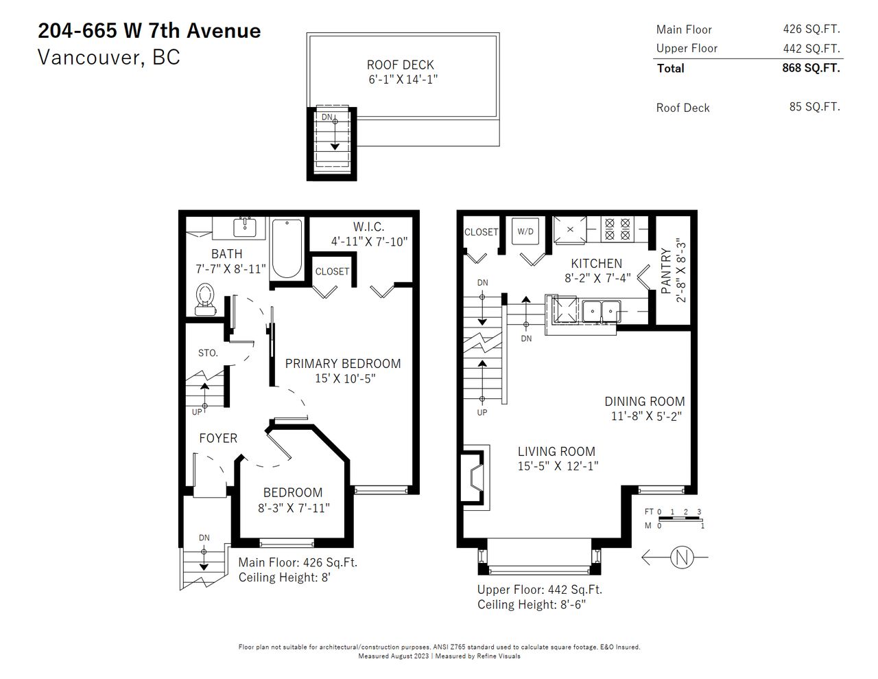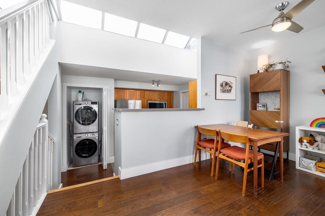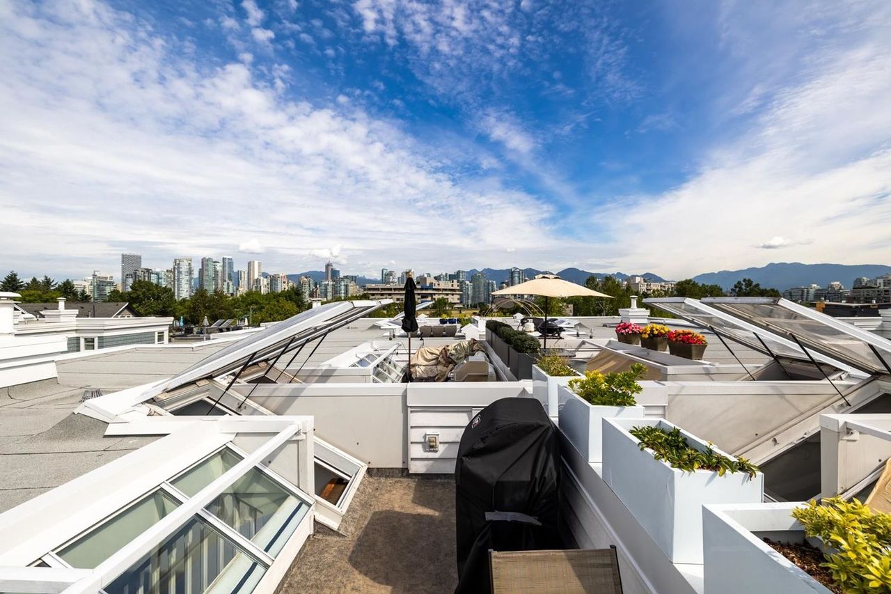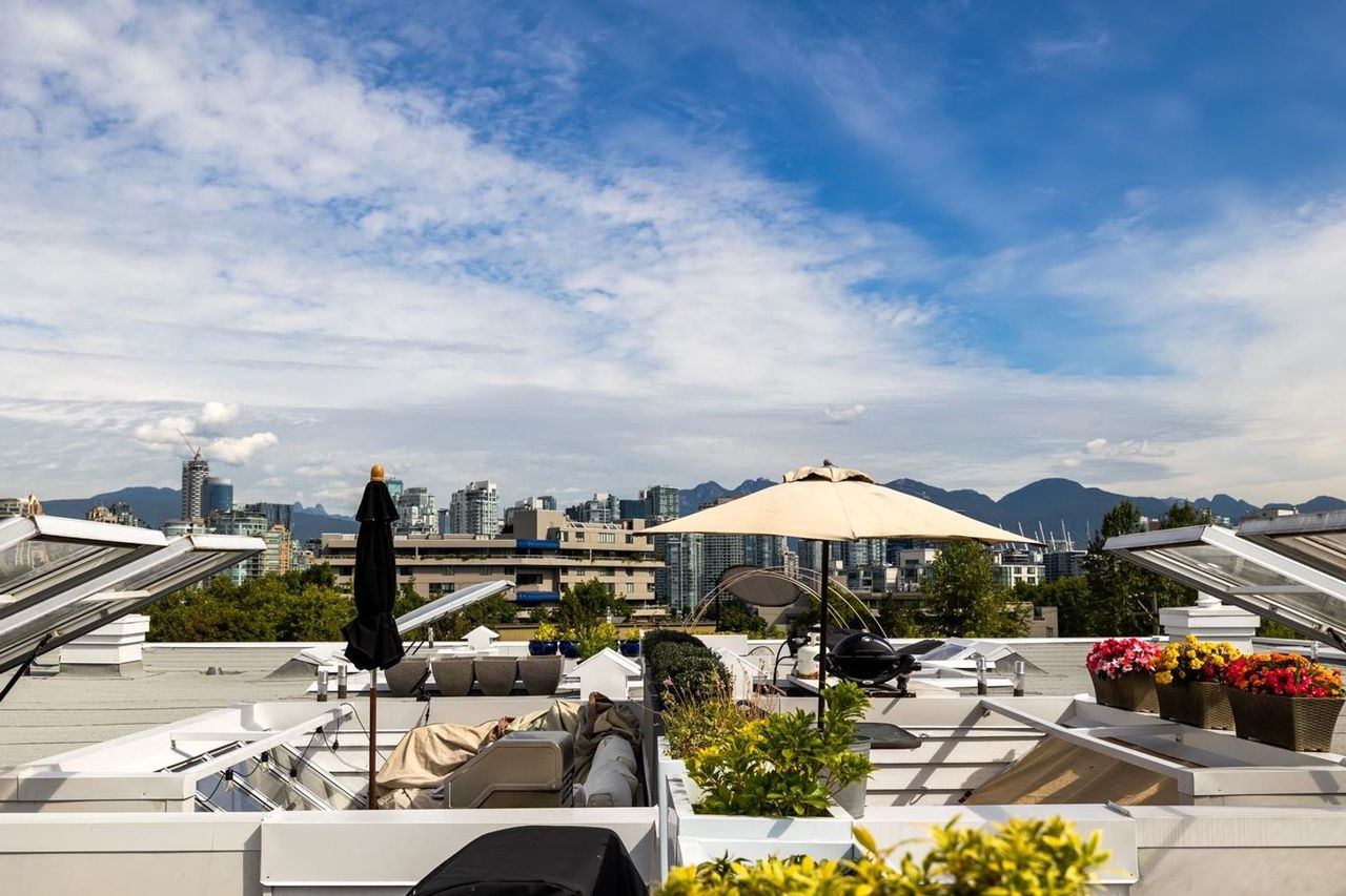 A gorgeous city-home ready to welcome you to the Cambie/Fairview lifestyle. You enter this reverse plan unit on the bedroom level with 2 bedrooms and a full bathroom, then get swept upstairs to the main living conveniences of the open kitchen, dining, and living areas. Entertain on your sunny rooftop deck enjoying huge views of the city skyline and North Shore mountains. Central to walk everywhere, with the ease of having TWO side by side parking stalls.