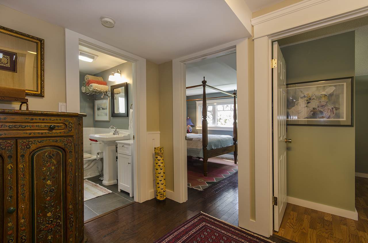 What a welcoming purple front door! It sets the stage for this comfortable modern home completely updated (with permits) in the last 13 years – garage addition, roof, windows, doors, back deck, HardiePlank/wood exterior, kitchen, bathrooms, floors etc! The custom kitchen with full height cabinets, stone counters, 2 sinks, and a bar fridge is spacious and has access to a big south facing deck ideal for entertaining and relaxing. From there you can enjoy the large flat back yard with southern exposure. Possibility to suite the walk-out basement! A fabulous family home that could suit downsizers and upsizers. Super accessible location located conveniently close to schools and recreation.