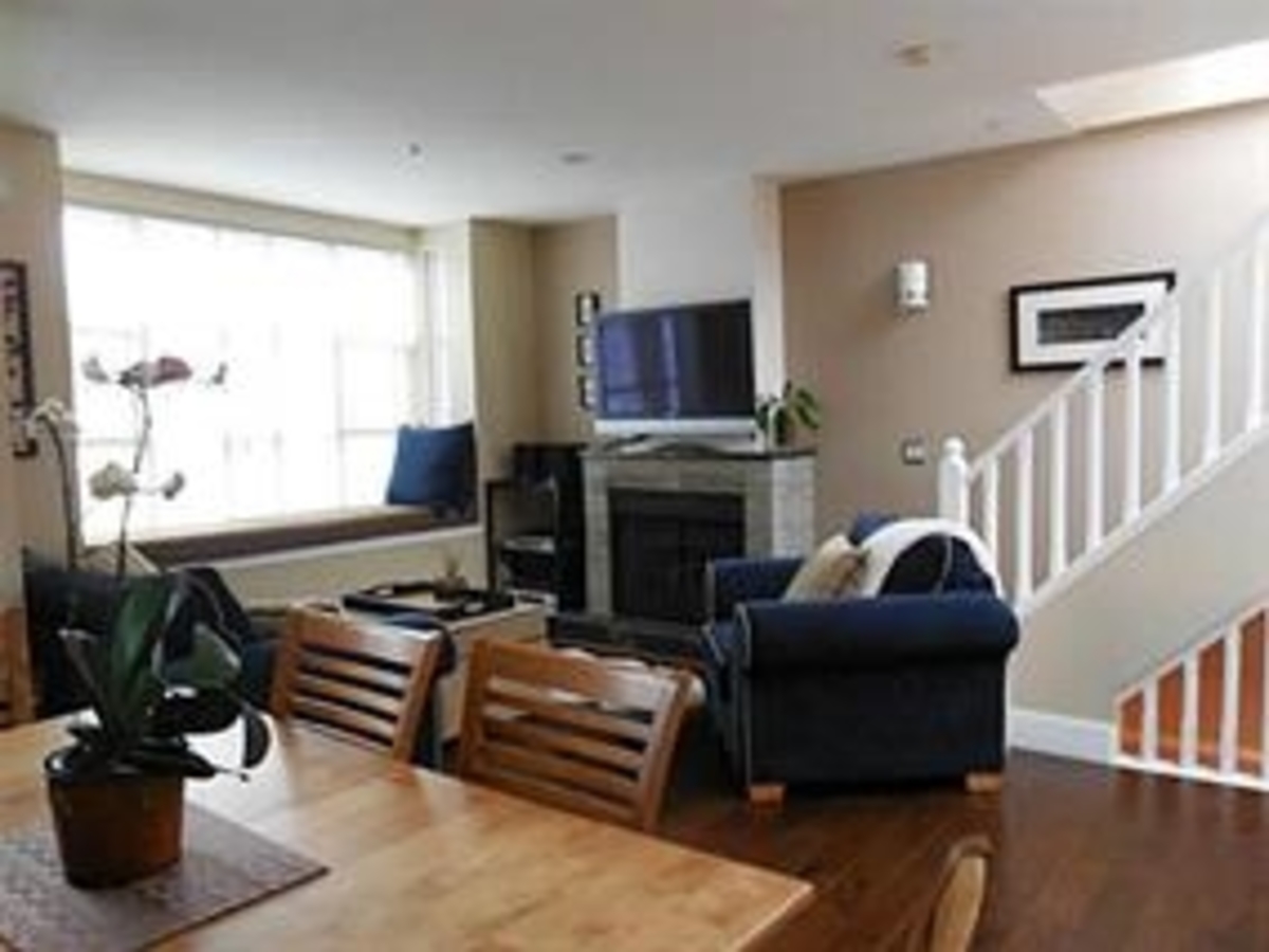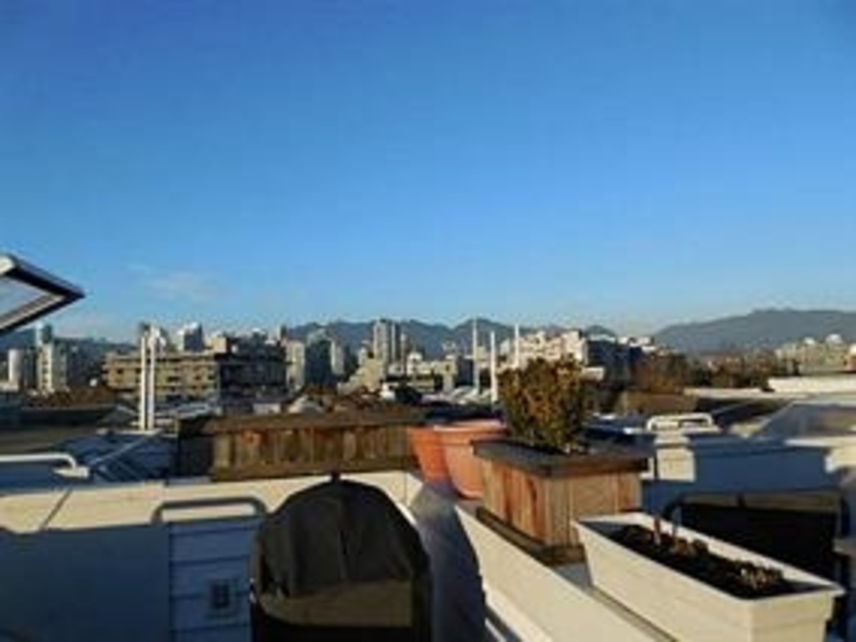 A True Townhouse in this ideal FAIRVIEW location. Bright & Beautiful 2 level townhouse with separate entrance off a secured inner courtyard. This 1 BEDROOM & DEN features a large living space & rooftop deck with great views of the Mountains & City. Extras include 2 PARKING STALLS, skylights, large bay window with seat, storage locker, gas fireplace, hot water radiant heat, large pantry, separate shower & tub. Beautifully updated with engineered hardwood flooring. This private & well run complex features a magnolia treed courtyard & is minutes from the Seawall, Canada Line Skytrain & Broadway transit corridor. Dog & Cat friendly, max 2.